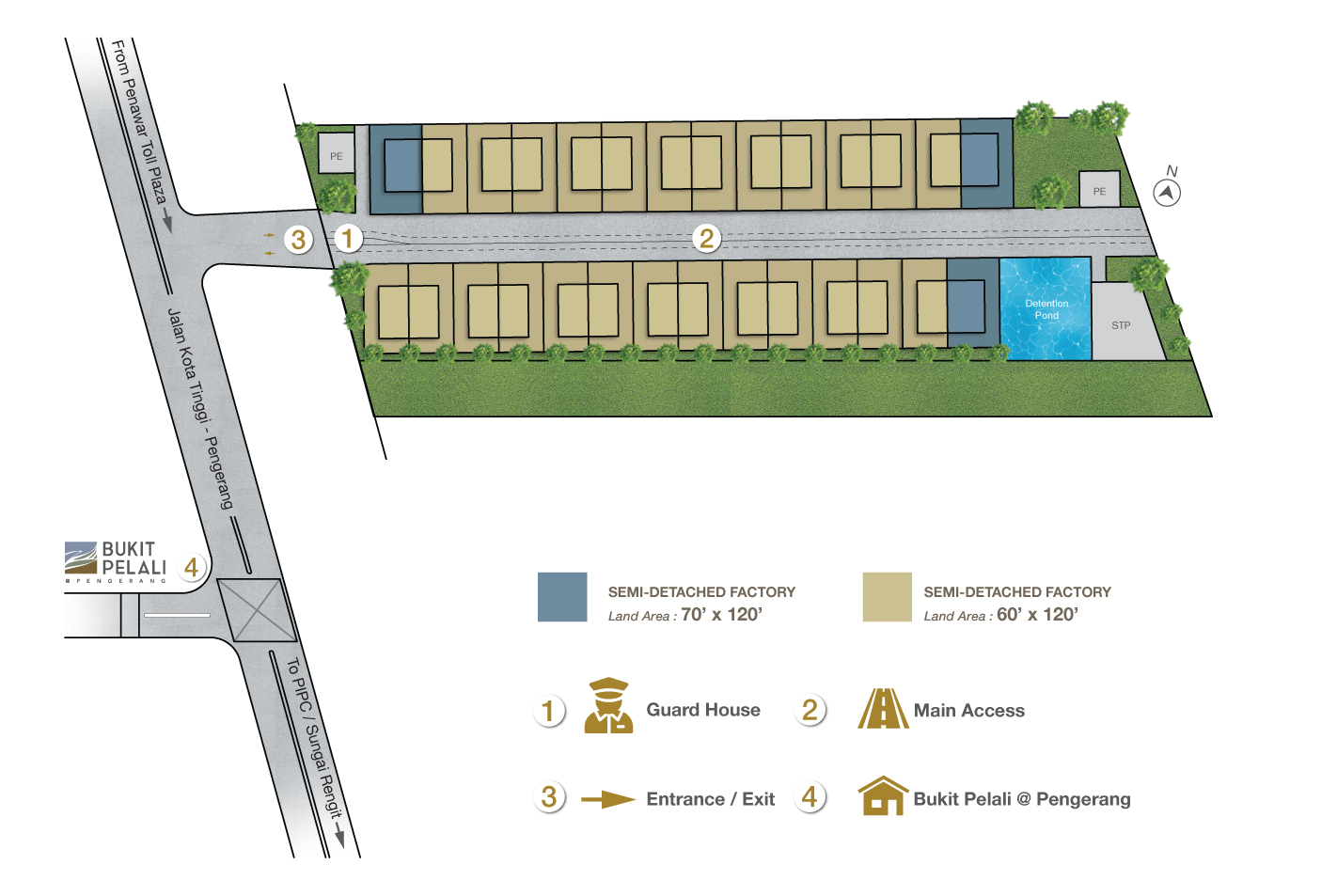Pengerang Business Park is strategically located with excellent accessibility via the Pengerang Highway as well as being adjacent to the Pengerang Integrated Petroleum Complex (PIPC), giving it an added advantage of being in the major industrial corridor of Pengerang, Johor. The park also provides total peace of mind with its gated & guarded premises, complete with 24/7 surveillance to ensure safety at all times.